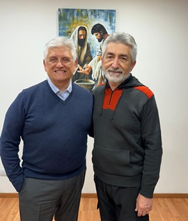 El pastor Charly Olah regresó a Paraná luego de viajar junto al equipo de medios de Boedo, para ser parte de las convenciones. Antes de su vuelta, pasó a saludar al pastor Omar que estaba en la reunión. ¡Le damos gracias a Dios por su vida y servicio!